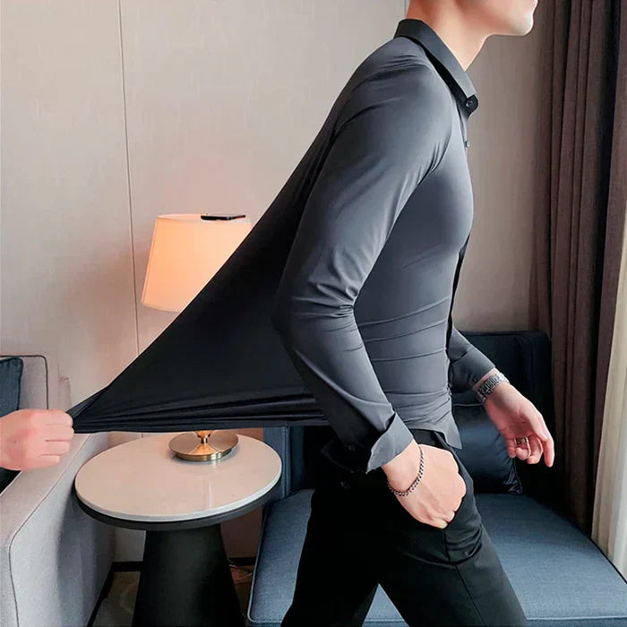 Camisa Manga Larga Unicolor Cuello Mao- Mônaco - [83% Algodón Egipcio y 17% Elastano]
