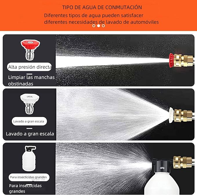 Ya sea que necesites lavar tu automóvil, limpiar tu patio o regar tu jardín, nuestra pistola de presión es la herramienta perfecta para todas tus necesidades. Con su versatilidad y potencia, podrás enfrentarte a cualquier tarea con confianza.